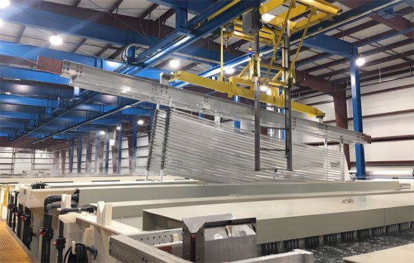 انوڈائزنگ پروڈکشن لائن ایک خودکار الیکٹرو کیمیکل سطح کے علاج کا نظام ہے جو ایلومینیم اور کے لئے ڈیزائن کیا گیا ہے ایلومینیم مرکب دھات کی سطح پر گھنے اور یکساں آکسائڈ پرت کی تشکیل کرکے ، لائن نمایاں طور پر اضافہ کرتی ہے سنکنرن مزاحمت ، پہننے کے خلاف مزاحمت ، اور آرائشی ظاہری شکل۔ یہ بڑے پیمانے پر آرکیٹیکچرل ایلومینیم پروفائلز میں استعمال ہوتا ہے ، صارف الیکٹرانکس ، گھریلو ہارڈ ویئر ، لائٹنگ ، اور آٹوموٹو اجزاء۔